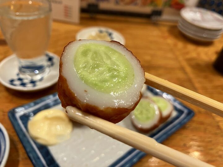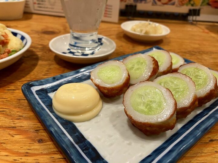 高知のチクきゅうは、冷たく瑞々しいきゅうりをチクワで包んだ素朴な一品。