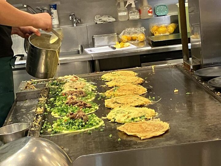 店内はオープンキッチンで、鉄板の上で焼き上がる音と香りが心地よかった。