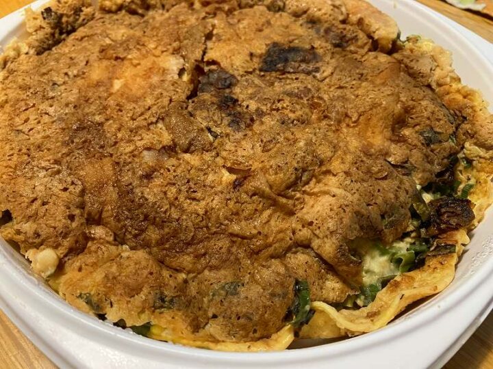 たっぷりの青ねぎに牛すじとこんにゃくを混ぜ込んだすじねぎ焼( ̄¬ ̄*)じゅるぅ~