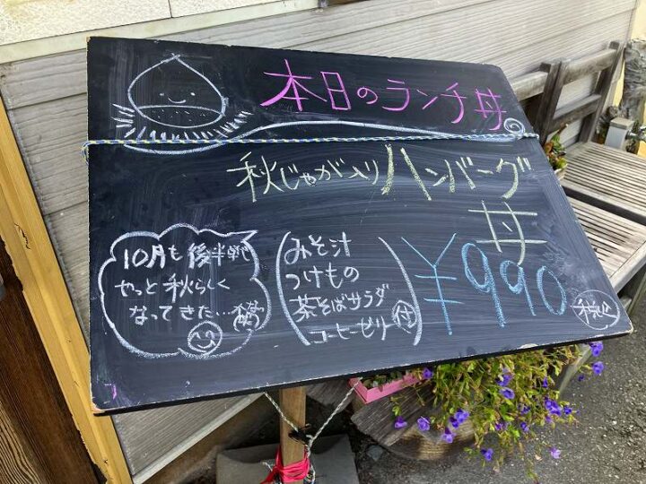 本日のランチ丼は、秋じゃが入りハンバーグ
