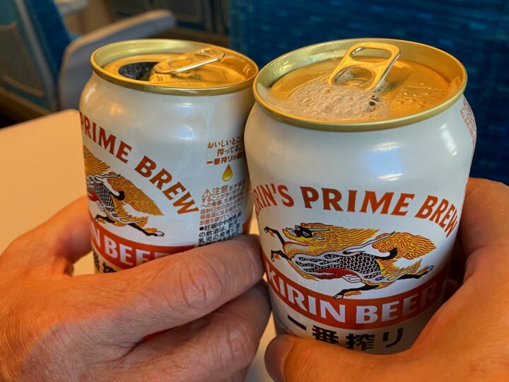 ドリンクチケットで角ハイボール濃いめ。こだま号の揺れる音に心もほぐれる。