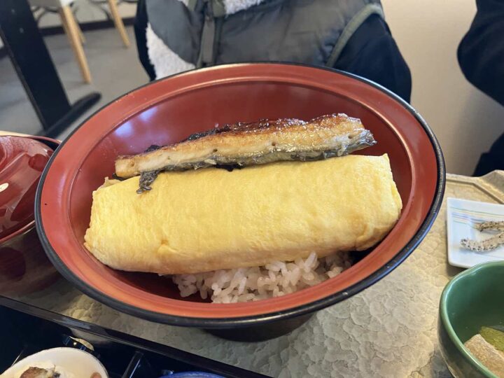 うな玉丼。ふわふわの玉子に、うなぎのコクが混ざる優しい味。おふくろ達が喜んでいた一杯。