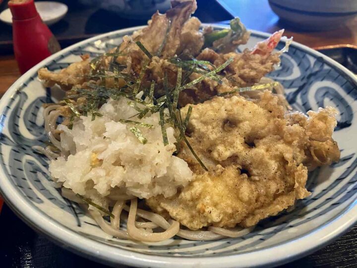 締めは天おろしそば。ぶっかけスタイル。つゆのキレ、大根のさっぱり感。