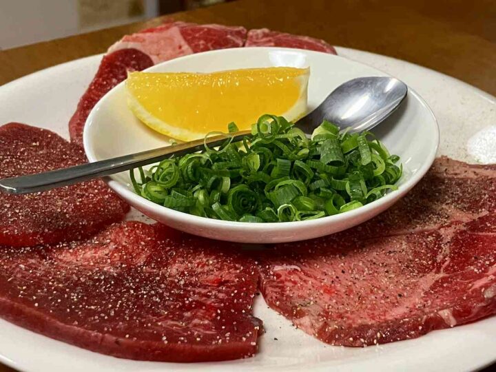 タン塩。最初の一皿にぴったり。薄切りで歯切れよし。軽く焼いて、レモンでさっぱり。