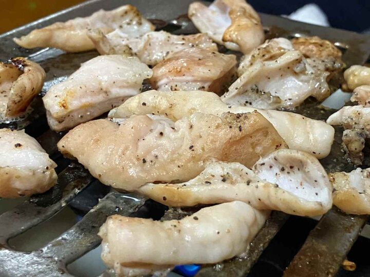 ジンギスカン鍋を使って、豚三枚肉ともやしをたっぷり味わう晩ご...