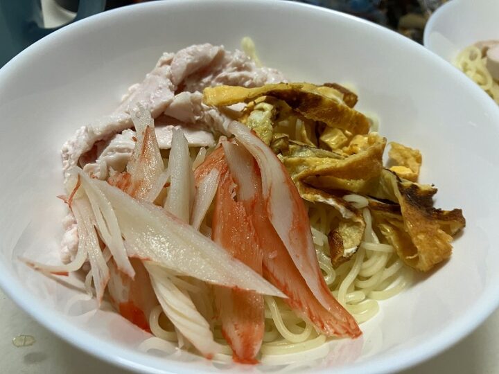 鶏むね肉とかにかまの冷やし中華、とっても美味しくいただきました。