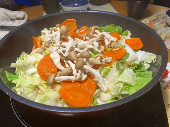 その後、野菜を加えると水分が出て、鍋は煮るような形に変わっていく。