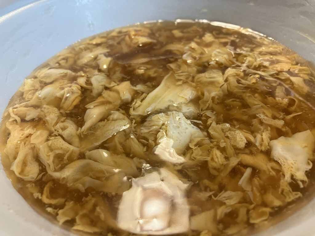 一軒一軒のお店で手造りする特製玉子あんかけは、北海道産の真昆布、厳選された鰹節などの素材から採った白出汁をベースに、とろみをつけながら玉子を入れてふんわりと仕上げている。