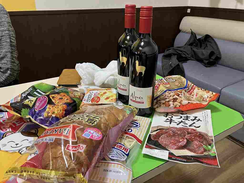ザザシティの地下にあるカネスエで、ワインを2本と、おつまみいろいろ買い込んだ。