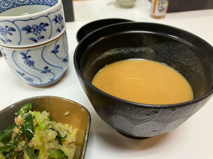 アサリのお出汁がシッカリ香る味噌汁は、どことなく卵の風味。珍しい。
