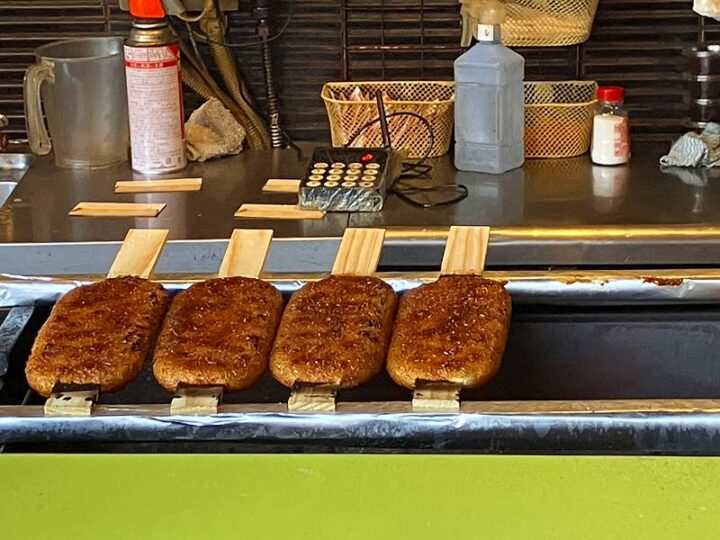 焼きたての五平餅は香ばしい。甘辛い味噌だれが香りを引き立てる。
