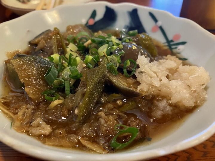 その合間を彩るのは、ナスとオクラの揚げびたし。