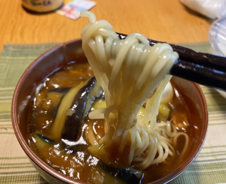 今回は通販で冷凍なすソバを取り寄せ、おふくろと一緒に味わった。
