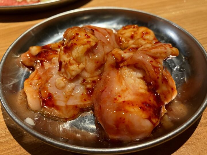 アプリ登録の特典で豚と鶏の焼肉をサービスでいただき、当日は「ニクの日」のクーポンで特選まるよし盛りが29%引きという嬉しいサプライズもあった。