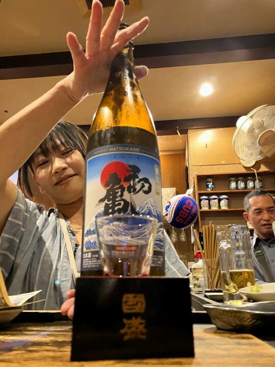 最初の一杯は、静岡の名酒・初亀 急冷美酒。