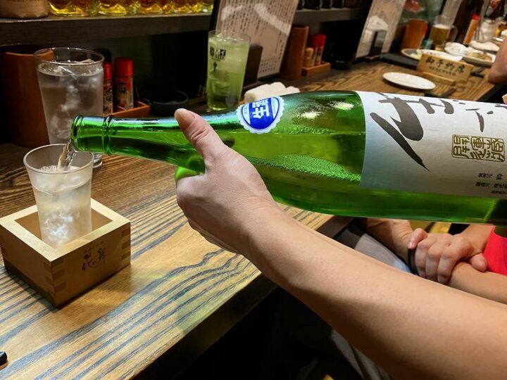 席に来て一升瓶から注いでくれる。