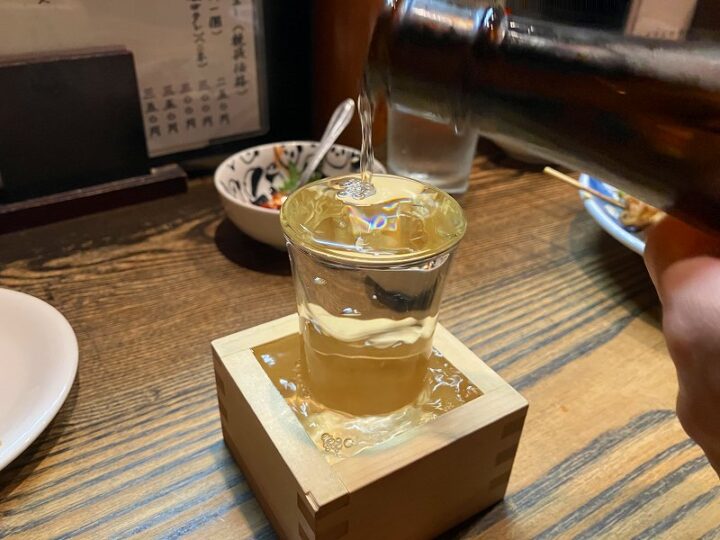 コップいっぱい、さらに枡まであふれるほど。これぞ日本のもてなしと思わずうなずく。