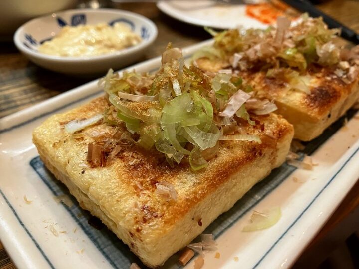 油揚げの納豆包み焼き。香ばしい香りと納豆のとろみが意外なほど合う。
