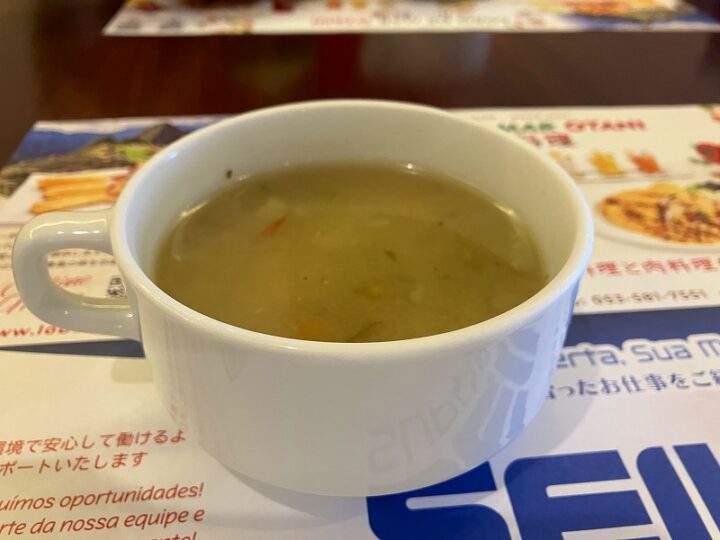 スープは優しい味わい。野菜のうま味がしっかり溶け込み、体の芯から温まる。
