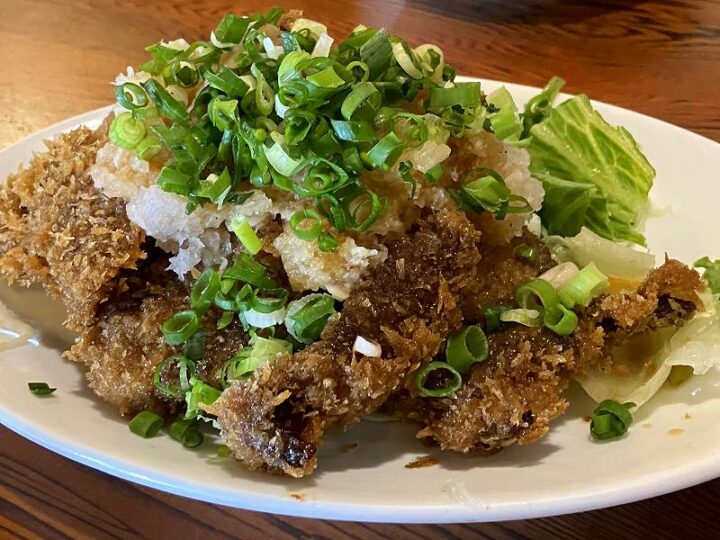 レバカツのおろしポン酢は、外はカリッと、中はふんわり。大根おろしの酸味が絶妙に合う。