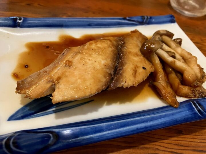 ブリの照り焼きは、照り焼きというよりも煮魚のよう。やさしい甘辛さが酒を進ませる。