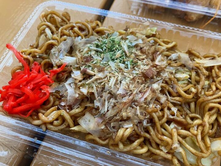 香ばしいソースの香りに誘われて焼きそば。もちもちの麺とたっぷり野菜が絶妙なバランス。