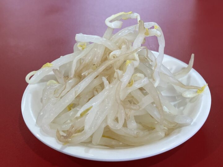 カウンターに腰を落ち着け、サービスの酢もやしをツマミながら提供を待つ。
