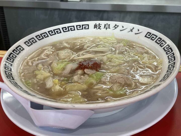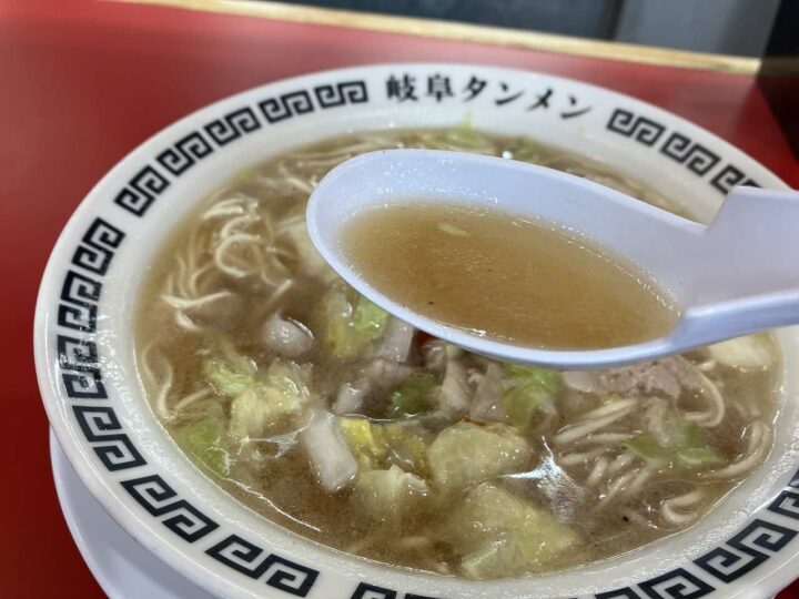 岐阜タンメン2辛。透き通るスープに赤みが少し差す姿。食欲を静かに呼び込む一杯。