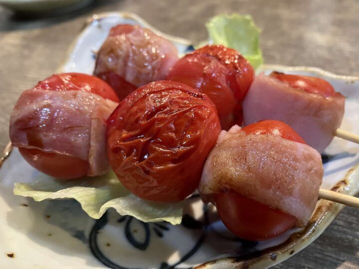 トマトベーコン串焼きは、甘みと塩気が跳ねる幸福感。