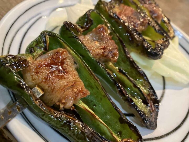 ピーマン肉詰め串焼き。旨みを包み込む瑞々しい歯ごたえ。