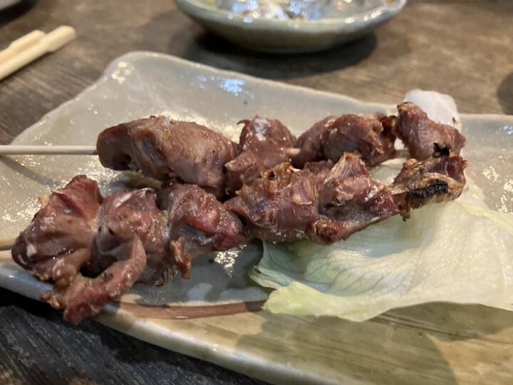砂肝串焼き。こりこりと軽やかに響く食感。