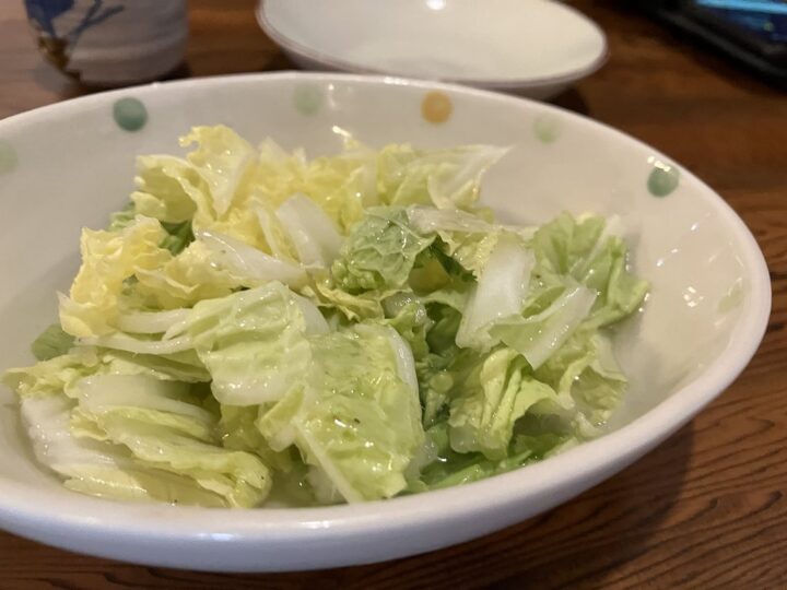白菜の浅漬けは、やわらかな塩味としゃきっとした歯ごたえ。
