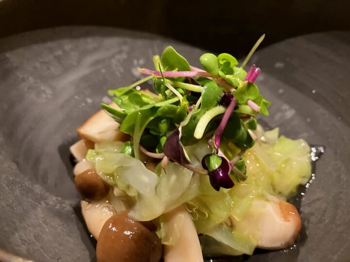 香りで始まる料理は、きのこたっぷりの先付け。