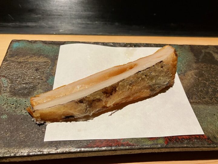 たちうおの天ぷらは、すごく厚く軽やかな身。香ばしい仕上がりに唸ってしまう。