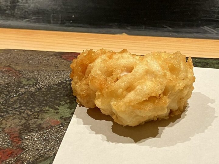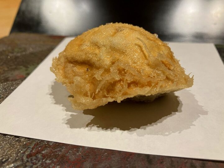 白子の天ぷら。外は軽く、中はとろり。おいしい!