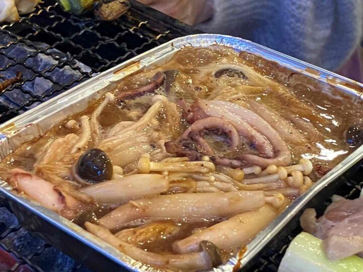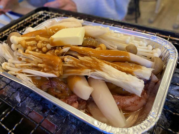 続いてイカとキノコのワタ焼き。ワタのコク、キノコの香り。