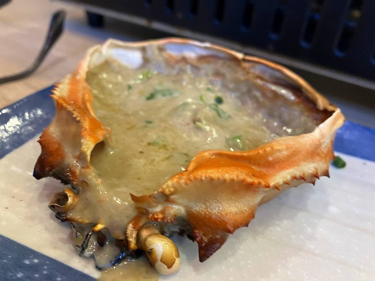 浜焼きの音に誘われての昼のみは酒に合う蟹味噌甲羅焼