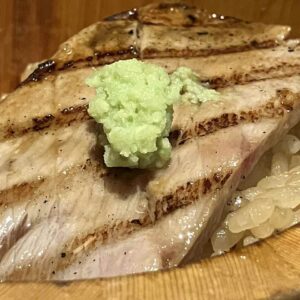 赤身の色が美しく、生姜と醤油でいただく。馬肉は脂が軽く、さっぱりした味。
