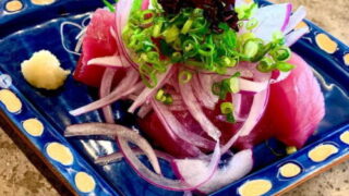 カマは筋肉が集まっている部分なので身が締まっており、腹身に近いので脂がのっている部位でもあります。身の締まり具合と脂乗りのバランスが良く、旨みがあります。