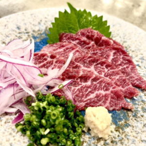 - 国産馬刺し 特上赤身 特徴:馬肉本来のしっかりとした旨みを感じられる、柔らかくヘルシーな部位です。 味わい:さっぱりとしていながら、噛むほどに肉の味が広がります。