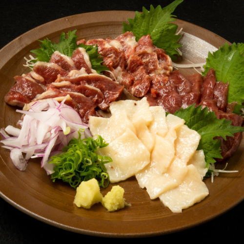 新鮮な国産馬刺しの様々な部位を食べ比べできる、特別な盛り合わせです。馬肉が持つそれぞれの部位の食感や味わいの違いをお楽しみいただけます。