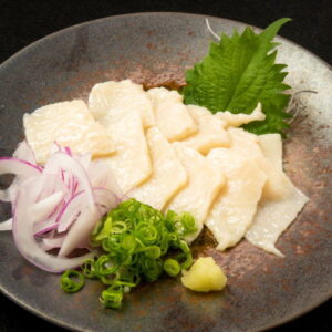 あばら部分の希少な三層肉。赤身の旨みと脂の甘み、そしてコリコリとした独特の歯ごたえが一度に楽しめる、通好みの逸品です。他ではなかなか味わえない、特別な食感をお楽しみください。