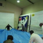 子ども凧揚げ用の大凧をバックに記念撮影(^^)v