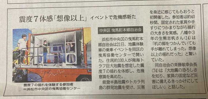 地震体験車で震度7体感「想像以上」 イベントで危機感新たに 浜松市中央区・曳馬町本郷自治会