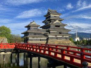 国宝松本城 赤い橋と黒い城が描く日本の風景
