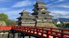 国宝松本城 赤い橋と黒い城が描く日本の風景