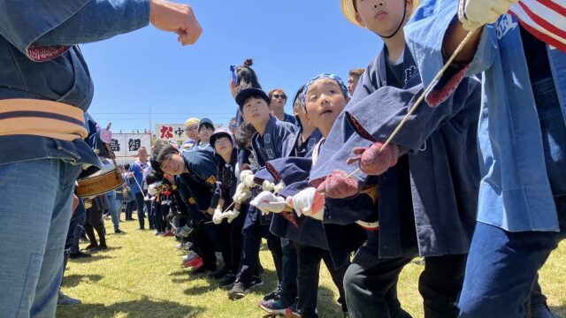 皐月の空に天高く!若い衆が凧を揚げ、みんなで凧糸を引きました。クリックすると、動画が見られます。 祝2025 曳馬本郷 子ども凧揚げ 祝2025 曳馬本郷 子ども凧合戦