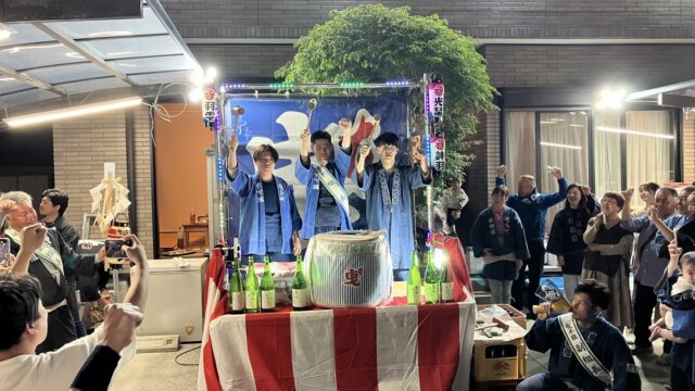 浜松まつり 祝2025 市中練りの後に 串カツくまたさんで祝い練り【動画】