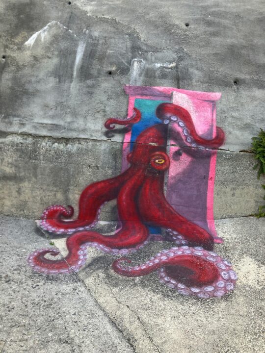 上陸してすぐ出迎えるたこのオブジェはにっしー。写真を撮らずに通れない存在感。