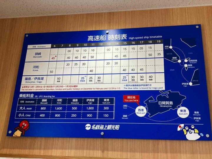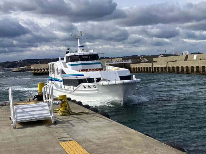 出発は師崎港。高速船に揺られ、わずか数分で西港に到着。